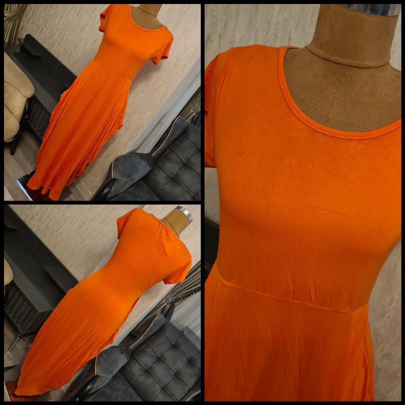 Kısa kollu, bisiklet yaka, midi boy turuncu hamile elbisesi. Düz ve baskılı desenli, rahat ve şık görünüm sunar.