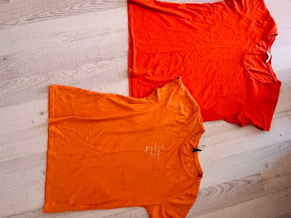 2 adet Turuncu renkli, kısa kollu bol kesim ve yuvarlak yakaya sahiptir. Parlak baskılı tasarımıyla rahat ve şık bir günlük spor giyim parçasıdır.