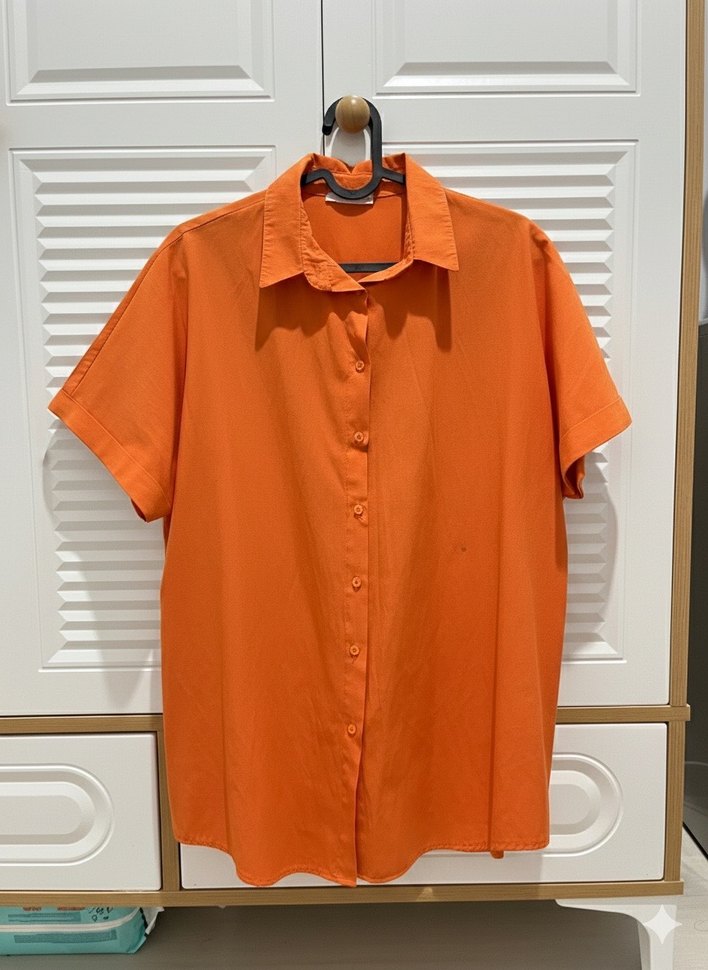 Turuncu Kısa Kollu Keten Gömlek