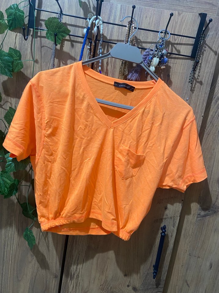 Turuncu Kısa Kollu V Yakalı Crop Top