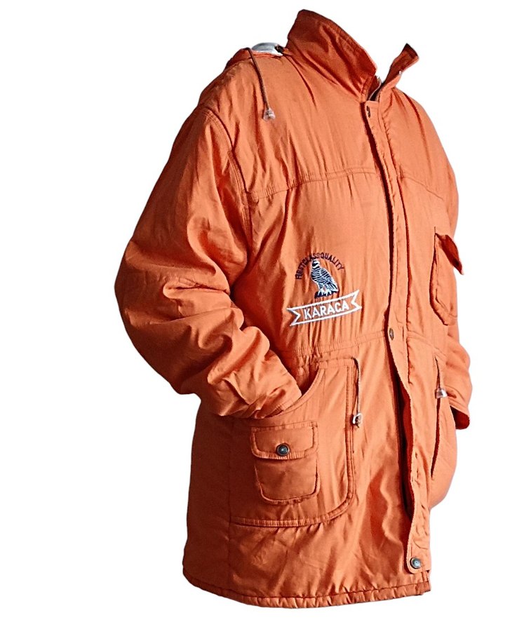 Turuncu renkte, düğmeli ve uzun kollu kız kışlık mont. rahat kesim ve sıcak tutan yumuşak kumaş ile outdoor kullanıma uygun.