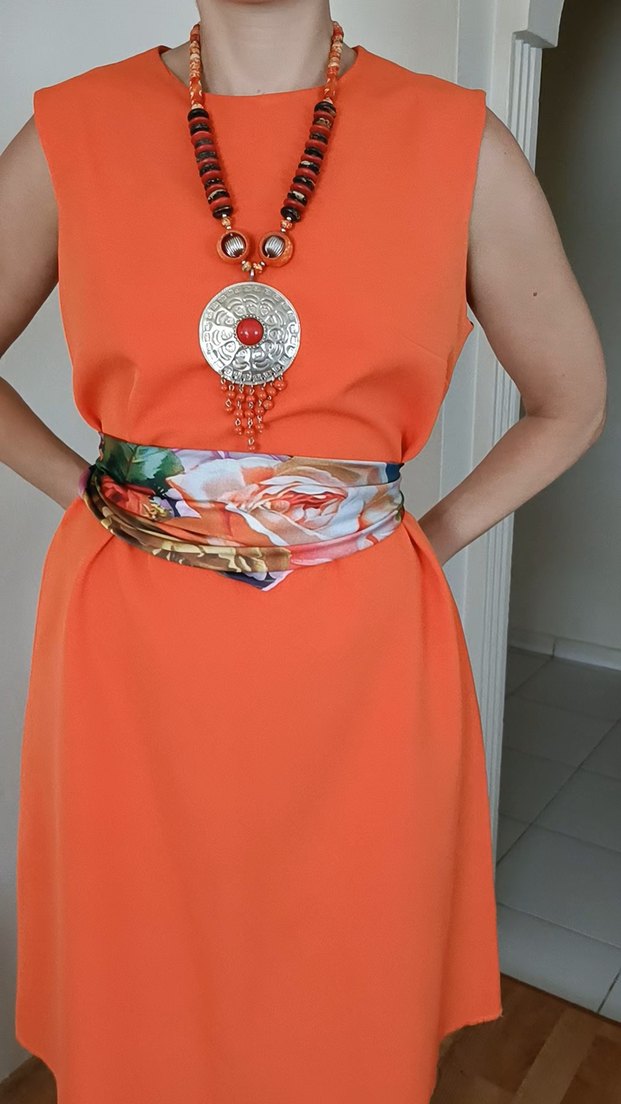 Canlı turuncu rengiyle enerjinizi yansıtacak, sade ama etkili bir stile sahip Trendyol marka elbise. Etiketi yok ama hiç kullanılmamıştır. Kolsuz, hafif çan formda kesimiyle hem rahat hem modern bir duruş sağlar. ✨ Şık bir kolye ve kemerle kombinlendiğinde davetlerde veya özel günlerde, ✨ Düz sandalet ya da sneaker ile günlük kullanımda, ✨ Ofiste, yazlıkta, tatilde… Kısacası her yerde tarzınızı konuşturabilirsiniz. Kumaş: Serin tutan, tok duran dökümlü kumaş (polyester karışımlı gibi duruyor) Renk: Canlı turuncu Tarz: Minimal, zamansız, A kesim Kollar: Hafif çan formlu kolsuz Beden: M (Göğüs genişliği 49 cm, boy uzunluğu 96 cm) Durum: Etiketsiz ama kullanılmamış, tertemiz. Mankenin üzerindeki kolye ve kemer olarak kullandığım saten eşarp fiyata dahil değildir, sayfamda ürünler arasında bulabilirsiniz. #turuncu #elbise
