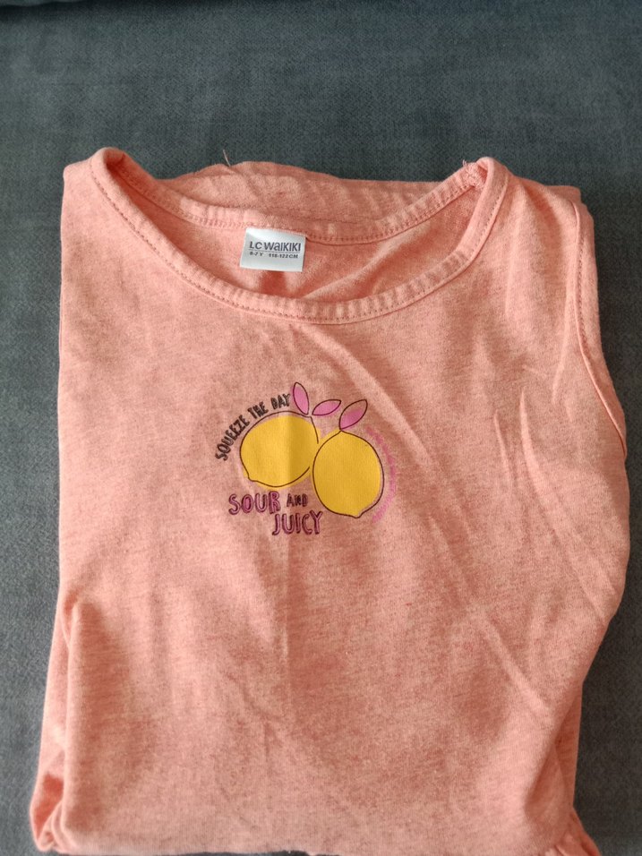 Turuncu pastel renkte, pamuklu, kolsuz ve yuvarlak yakalı kız elbisesi . Baskılı limon deseni ve 'Sour and Juicy' yazısı ile rahat ve şık bir görünüm sunar.