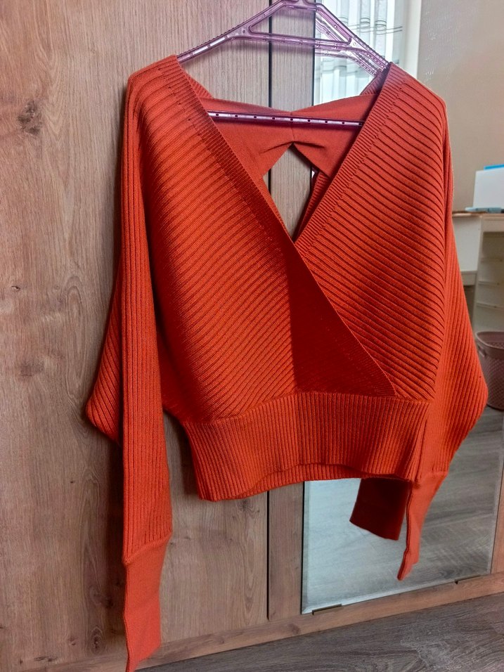 S-M bedene uygun. Hatta M bedende daha iyi durur. Sadece 1 defa giydim. Turuncu renk. Görselde daha koyu çıktı ışıktan dolayı. Biraz kısa. Yarasa kollu. Hiçbir kusuru yok.