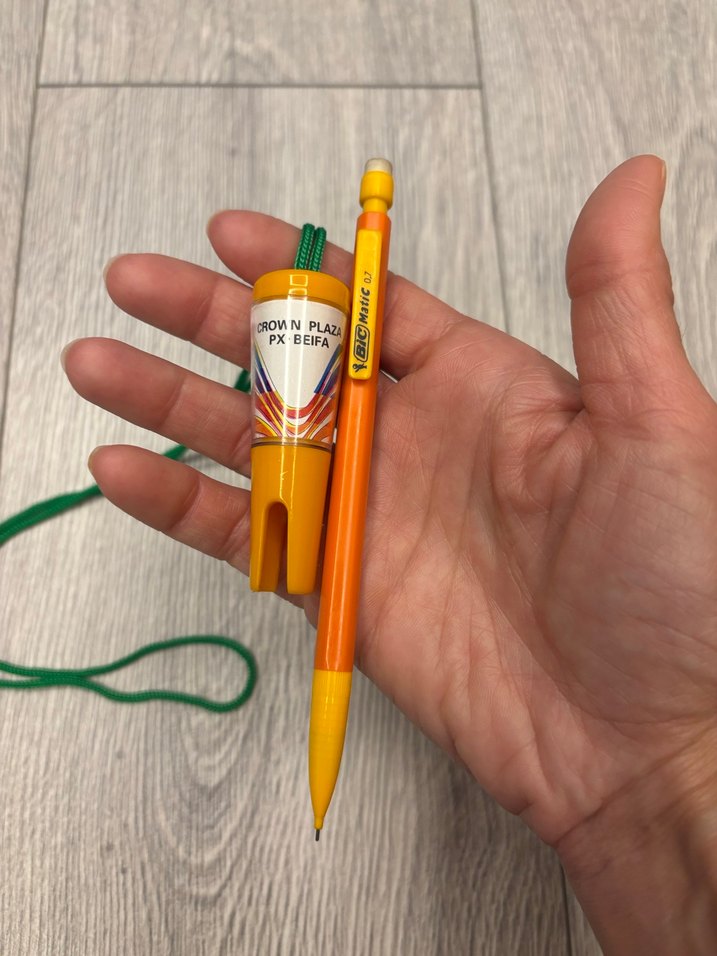 Canlı turuncu renkte mekanik kurşun kalem silgili, 0.7 uç, BIC marka , kapaklı yeşil boyun ipi ile birlikte taşınabilir. #bic #kalem