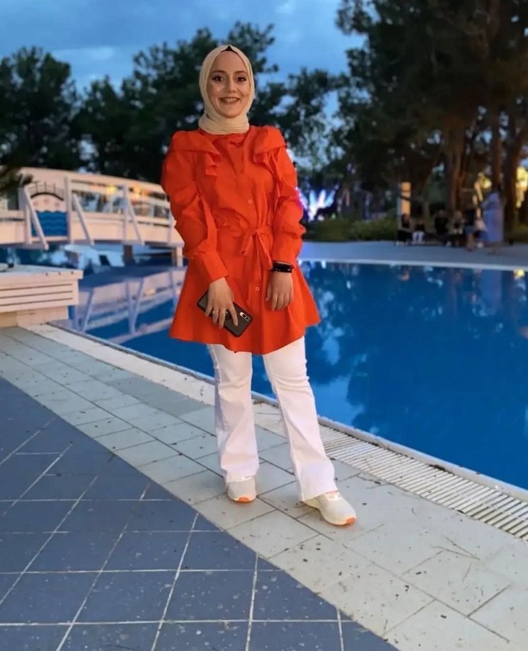 Turuncu kuşaklı, uzun kollu, yüksek yakalı tunik. Gevşek kesim ve parlak batik desenli, pamuklu kumaştan üretilmiştir. Günlük sokak stili için uygundur.