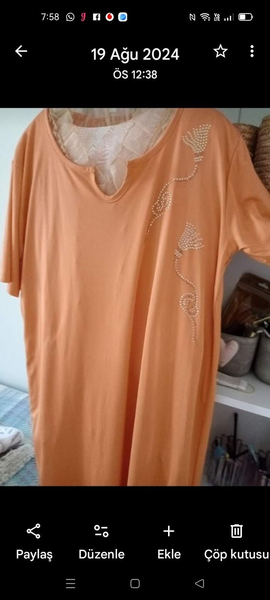 sıfır seten ipek işlemeli çok şık kıyafet turuncu renk M beden