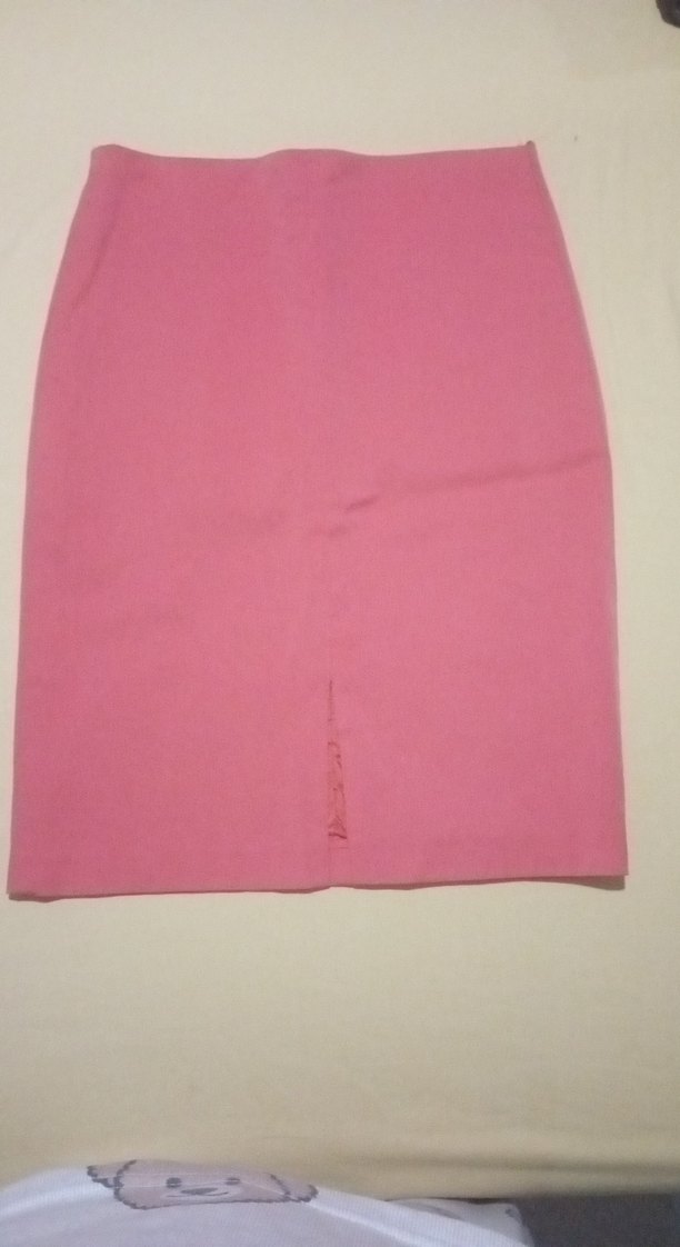 Pastel turuncu renkte, kalem kesim ve midi boyda, düz ve sade tasarıma sahip sentetik kumaştan etek. Ofis için minimal ve normcore stil sunar. ✨
