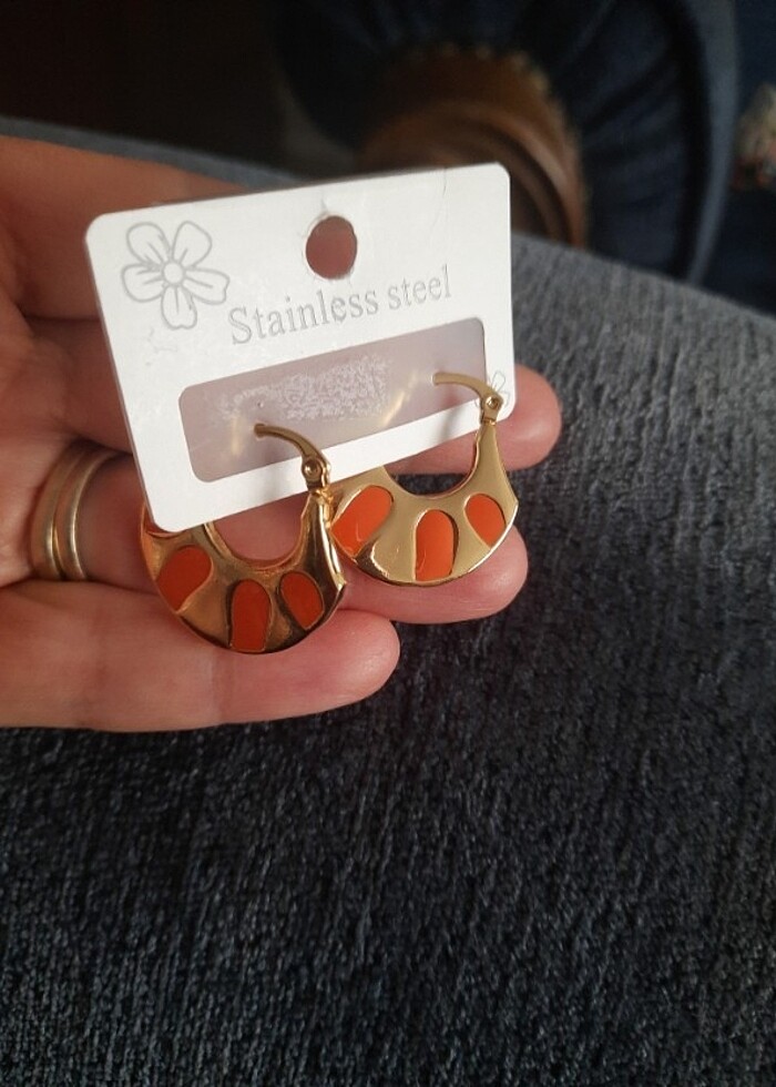 Turuncu Mineli Yazlık çelik küpe