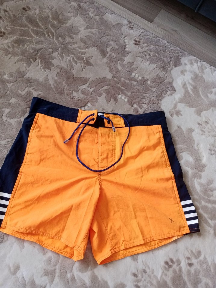 Parlak turuncu renkte, bel detaylı, bol kesim mini erkek şort. Plaj ve günlük sokak stiline uygun rahat tasarım. güneş solması var uygun veriyorum sıfır ürün orijinal EXUMA