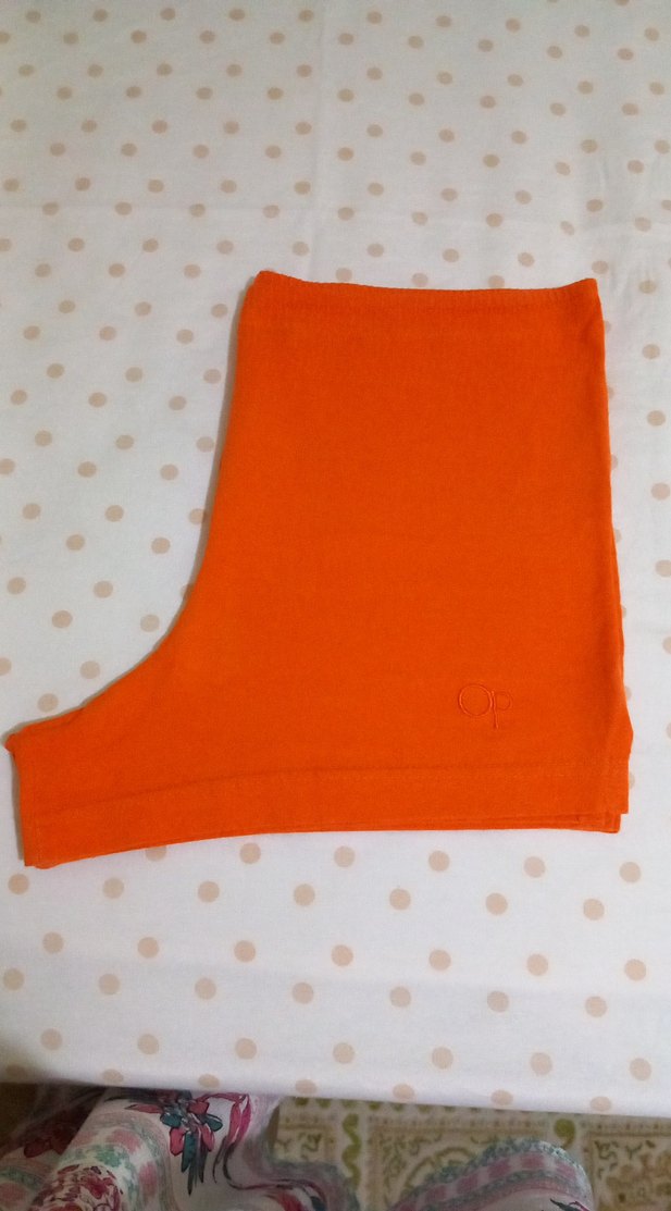 Yumuşak ve sıcak kumaştan, dar kesim turuncu hamile şortu. Kısa boy ve sade tasarım, günlük kullanım için uygun.