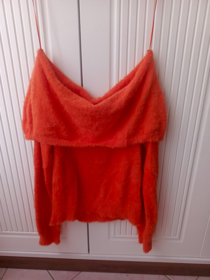 turuncu Mini Straplez Triko Kazak