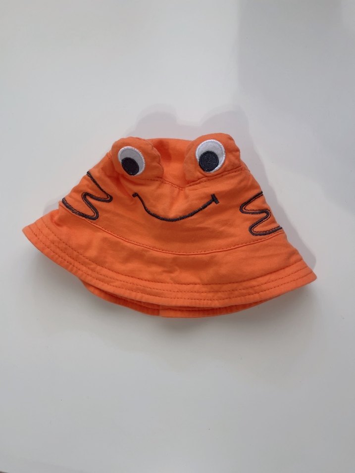 Canlı turuncu renkte, nakışlı göz ve gülümsemeye sahip çocuk şapkası. Yumuşak ve sıcak kumaştan, fırfırlı kenarıyla eğlenceli bir tasarım sunar.