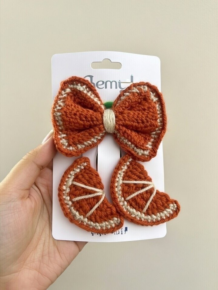 Turuncu Nakışlı Bohem Çocuk Saç Tokası Seti