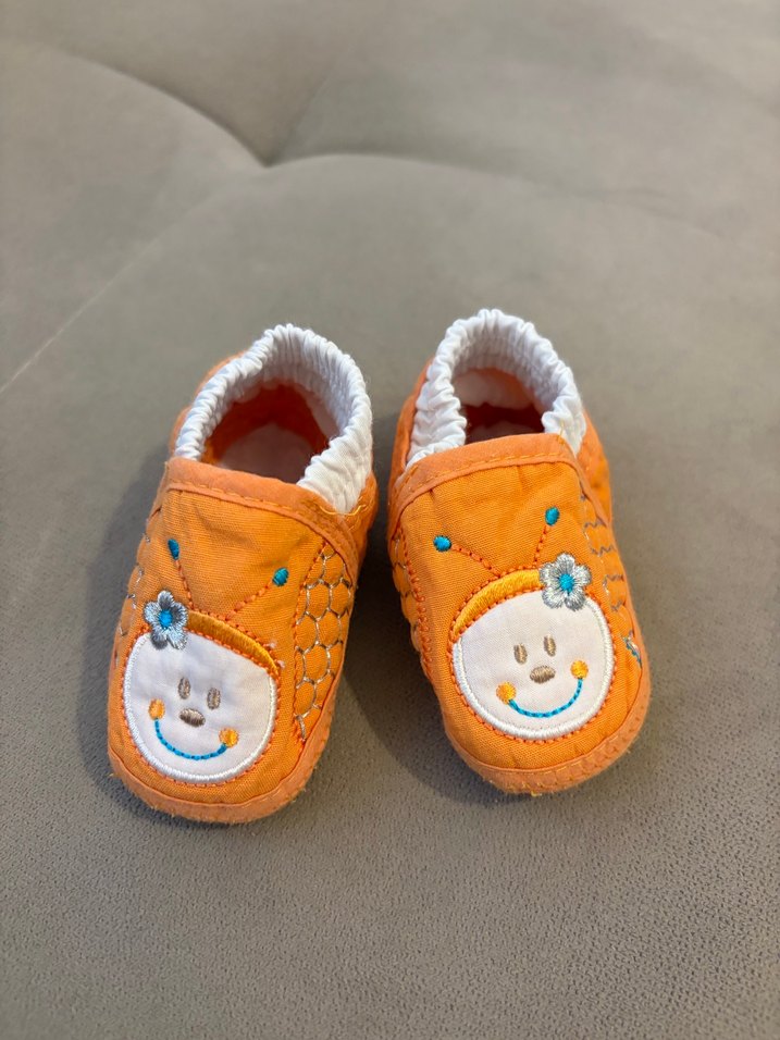 Turuncu Nakışlı Erkek Bebek İlk Adım Ayakkabısı