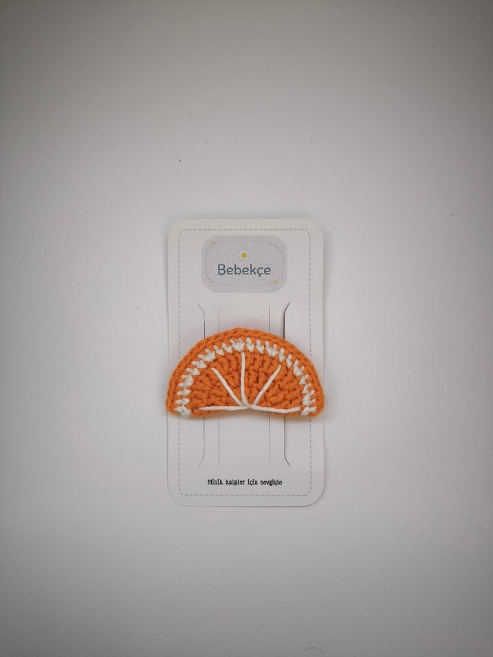 Turuncu Nakışlı Örgü Portakal Çocuk Saç Tokası