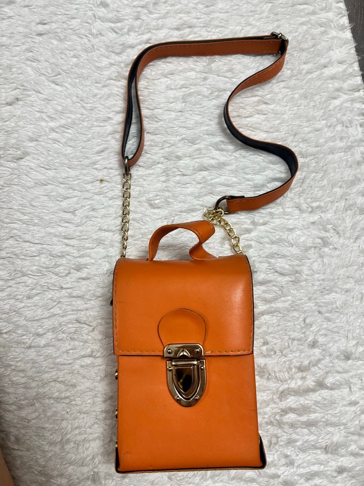 Turuncu renk suni deri isteğe göre elde yada omuzda kullanilabilir deformesi yok.