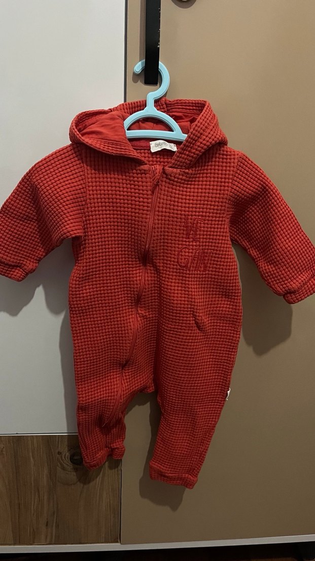 Koyu kırmızı örgü bebek kız tulumu, kesikli yaka ve yumuşak dokulu