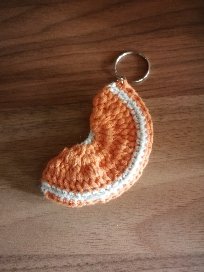 Yumuşak dokulu, örgü turuncu anahtarlık. Renkli ve bohem tarzıyla retro ve hippie ruhunu yansıtır.