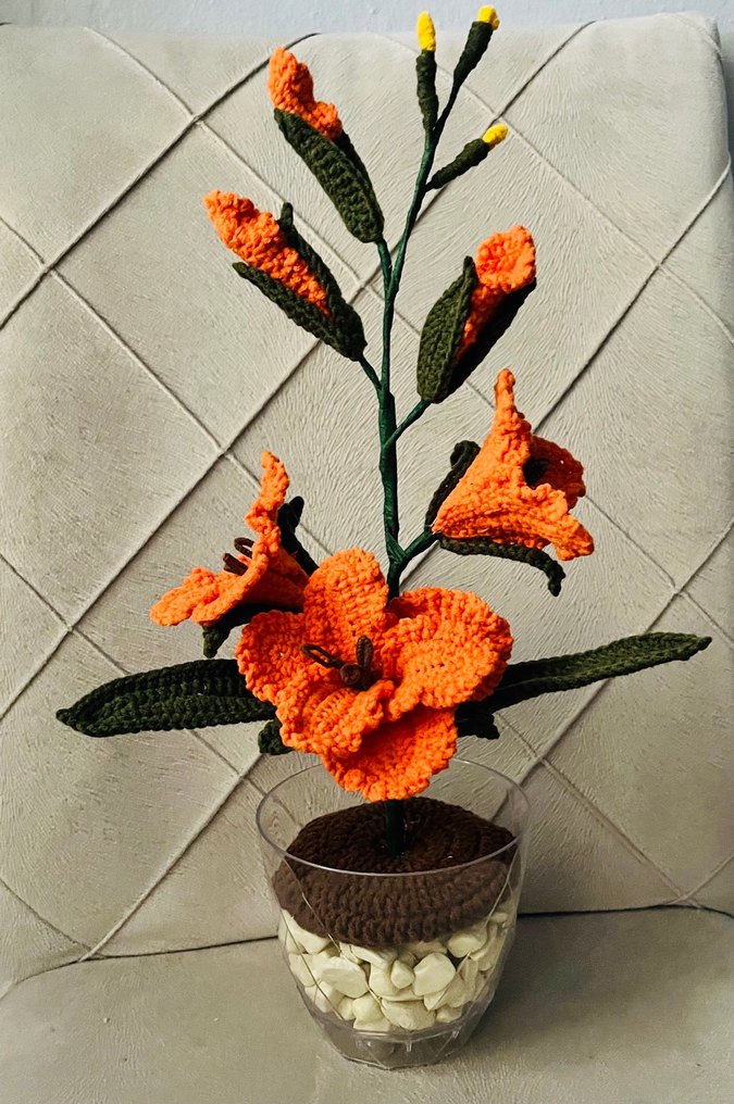 Turuncu Örgü Çiçekli Dekoratif Ev Aksesuarı