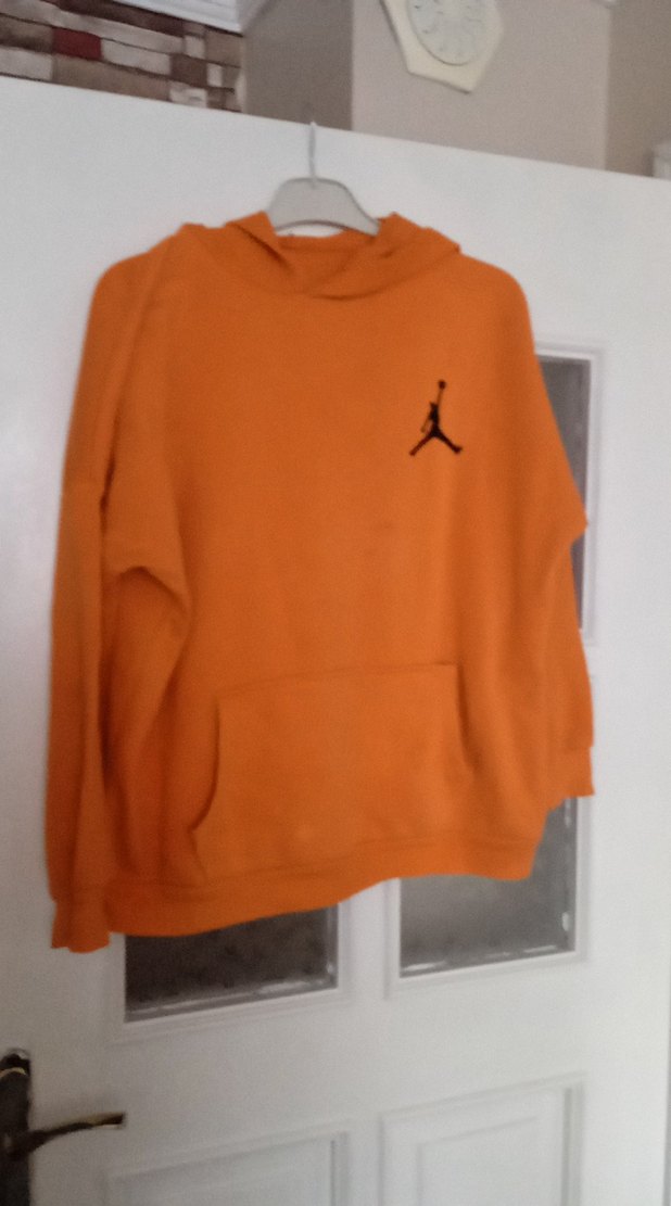 Turuncu renk, uzun kollu, bisiklet yaka ve oversize kesime sahip sweatshirtü. Yumuşak ve sıcak kumaştan üretilmiş, baskılı logo ve ön cep içerir. Rahat sokak stili için ideal. ön kızmında çok ufak bir beyazlık mevcur fotoda belirttim