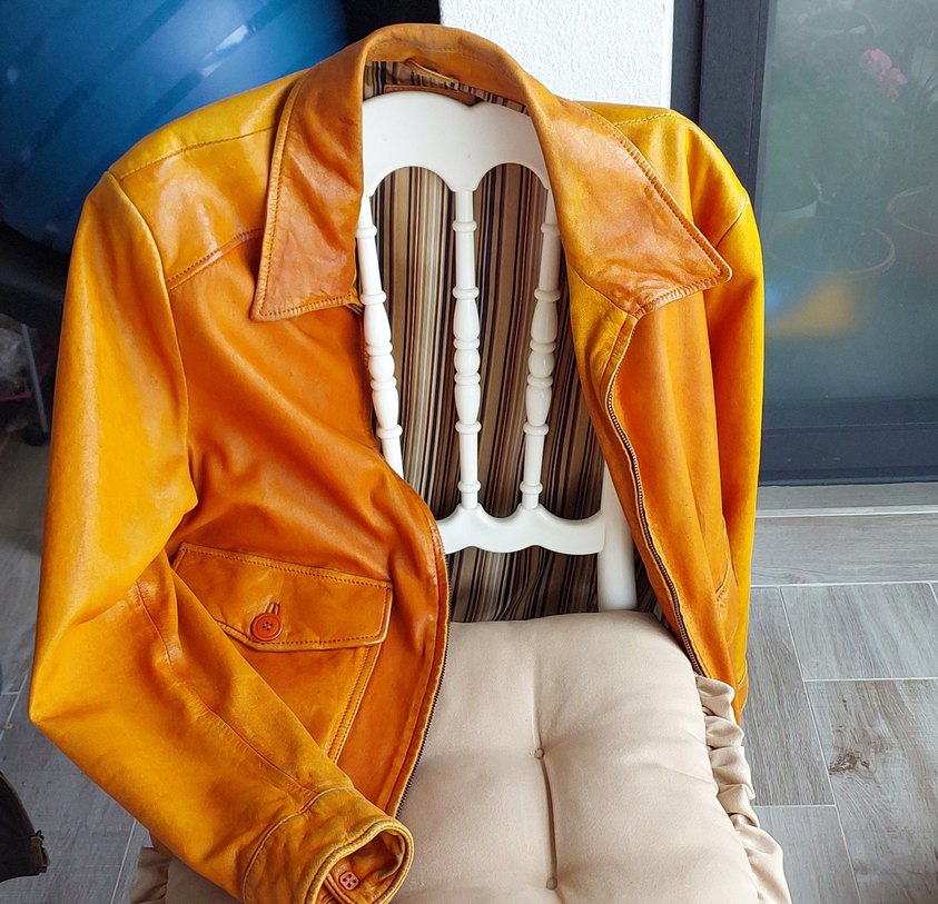 turuncu Parlak Biker Deri Ceket