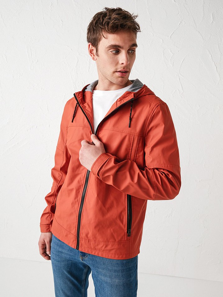 Turuncu Parlak Kapüşonlu Erkek Ceket