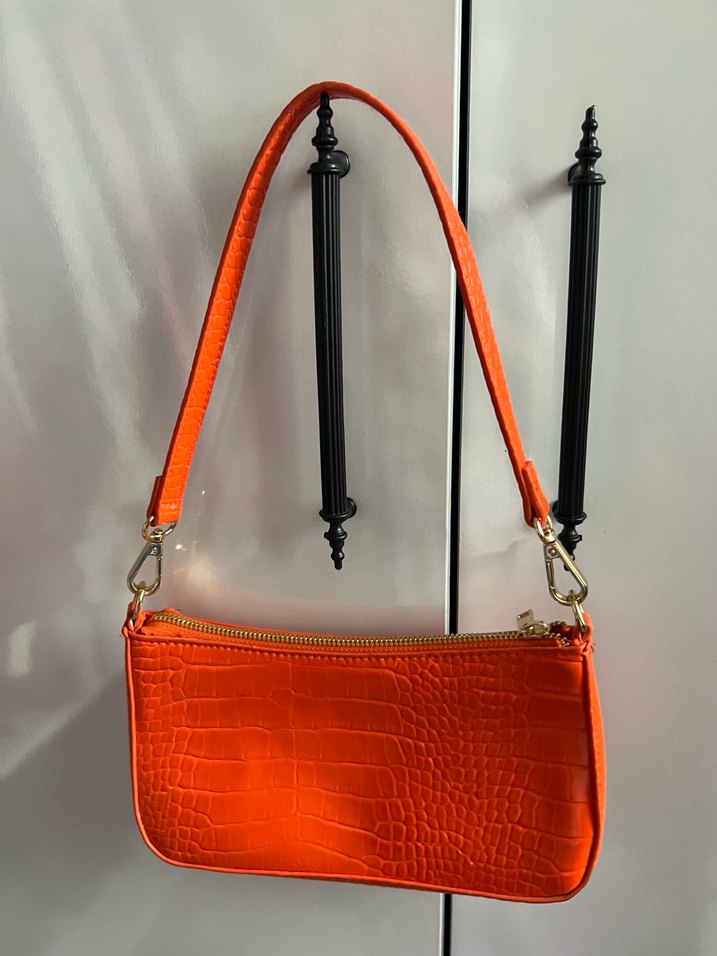 Turuncu Parlak Yılan Desenli Deri Kadın Çanta