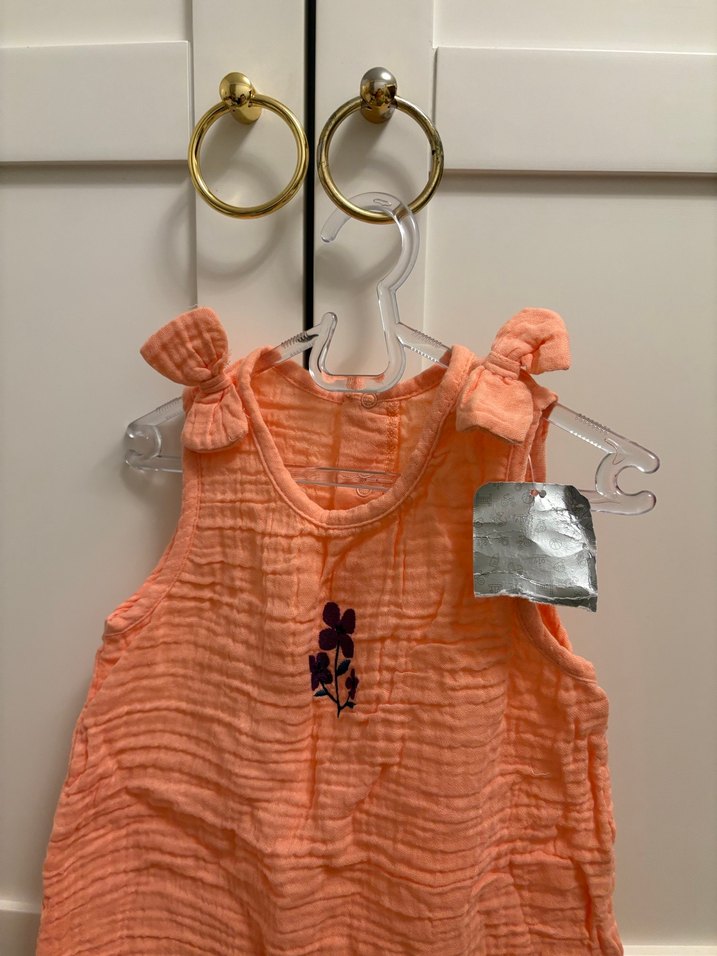 Pastel turuncu renkte, hafif giysiler için uygun şeffaf plastik askı. Standart kancalı, giysileri düzenlemek için kullanışlıdır.