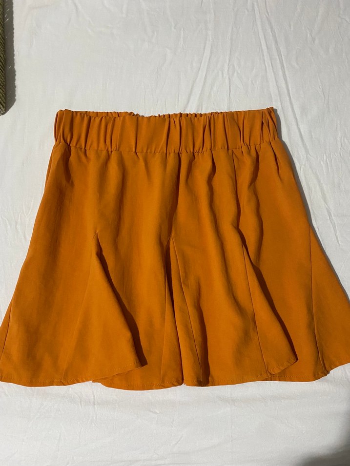 Salaş kesim, parlak bej renkte, ipeksi dokulu etek. M bedene de olur.