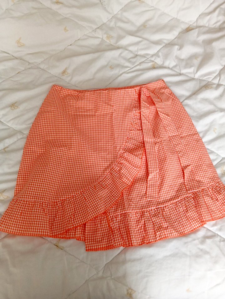 turuncu pötikare Fırfırlı Mini Etek