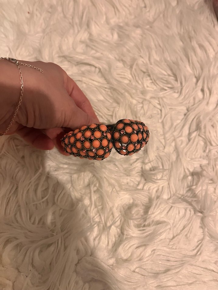 Parlak turuncu boncukların puantiyeli desenle süslendiği bohem tarzda bileklik. Günlük kullanıma uygun, vintage esintili retro tasarım. ✨
