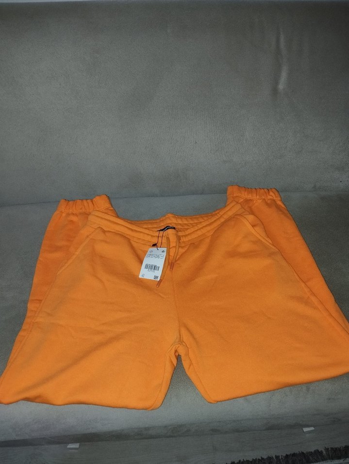 Parlak turuncu renkte, yumuşak ve sıcak kumaştan, rahat kesim kadın eşofman altı. Spor ve günlük sokak stili için uygundur. Beden sorunuz