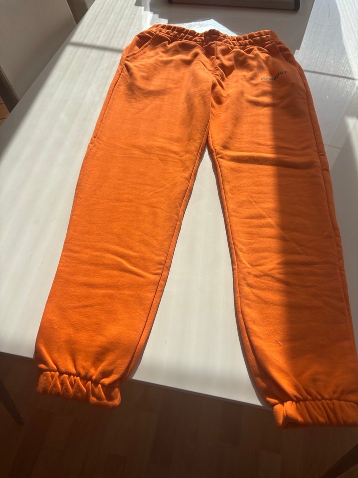 Parlak turuncu renkte, bol kesim ve lastikli bel ile bilek uçlarına sahip, yumuşak ve sıcak dokulu kadın eşofman altı.