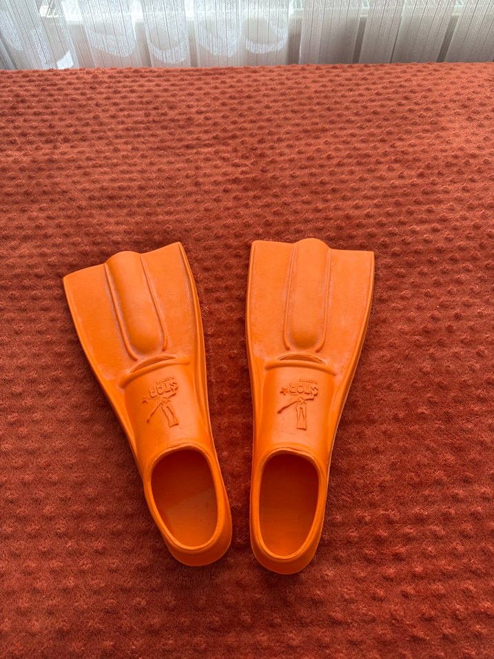 Turuncu renkli, kauçuk malzemeden yapılmış, palet kızım yüzme kursunda kullandı esnek kaliteli bir üründür küçük geldiği için satılık 29-31 numara arası kullanıma uygundur