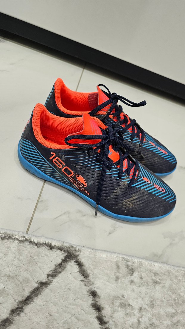 Turuncu renkli, baskılı, cırt cırtlı ve bağcıklı, kauçuk malzemeden yapılmış erkek çocuk spor ayakkabısı, sokak stili için uygun. 37.5 no çok yeni