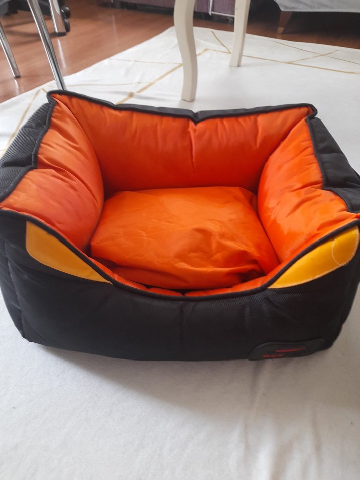 Yumuşak dolgulu, canlı turuncu renklı, yikanabilir ve silinebilir leke tutmaz kumaş kedi yatagi. minderi fermuarli sokulup yikanabilir. temiz ve az kullanilmis. kedim icin aldim ama kullanmadi.kediniz boylu ve buyukse yatagi begenmeyebilir. kucuk boy yataktir