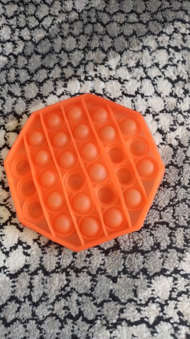 Turuncu renkli, kabarcık patlatma özellikli duyusal oyun ve stres azaltıcı oyuncak.