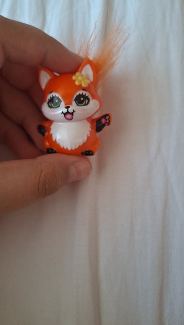 Turuncu renkli bu figür oyuncak, büyük gözlü ve başında küçük çiçek aksesuarı olan sevimli bir karakterdir. Yumuşak tüylü kuyruğu ve neşeli ifadesi vardır.