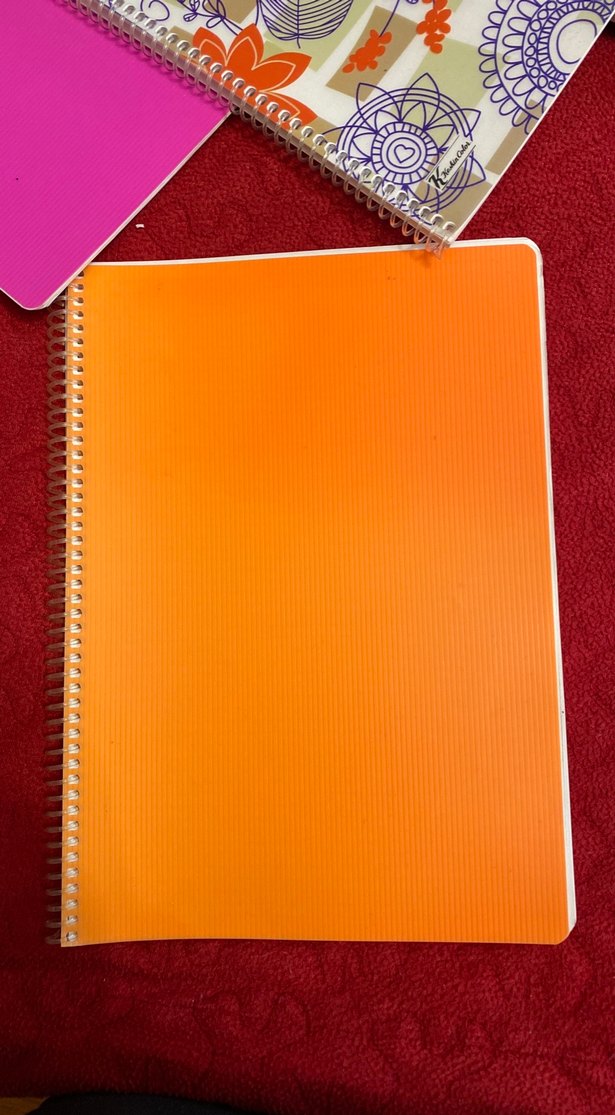 Turuncu kapaklı ve spiral bağlamalı, renkli ve kullanışlı bir defter. 156 sayfası kullanılmıştı. Onları çıkardım.