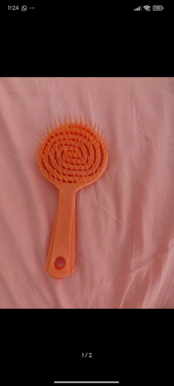 Turuncu saç fırçası, spiral şekilde esnek kıllara sahiptir ve nazikçe açma işlemi yapar. Kulplu ve asma deliği bulunur.