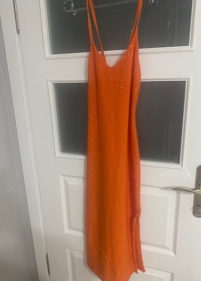Turuncu simli elbise