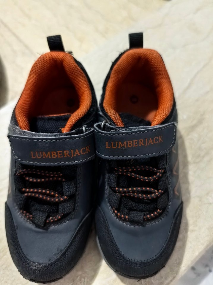 Turuncu siyah renkli, tokalı LUMBERJACK marka erkek çocuk spor ayakkabısı. Kauçuk tabanlı, trend sokak stili için uygun.
