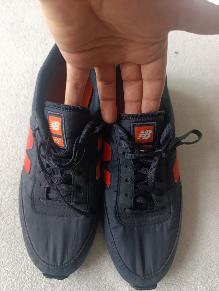 New Balance marka turuncu siyah renklerde, kauçuk tabanlı, velcro bantlı ince topuklu erkek spor ayakkabısı. Spor ve şık günlük kullanım için uygundur. ♀️