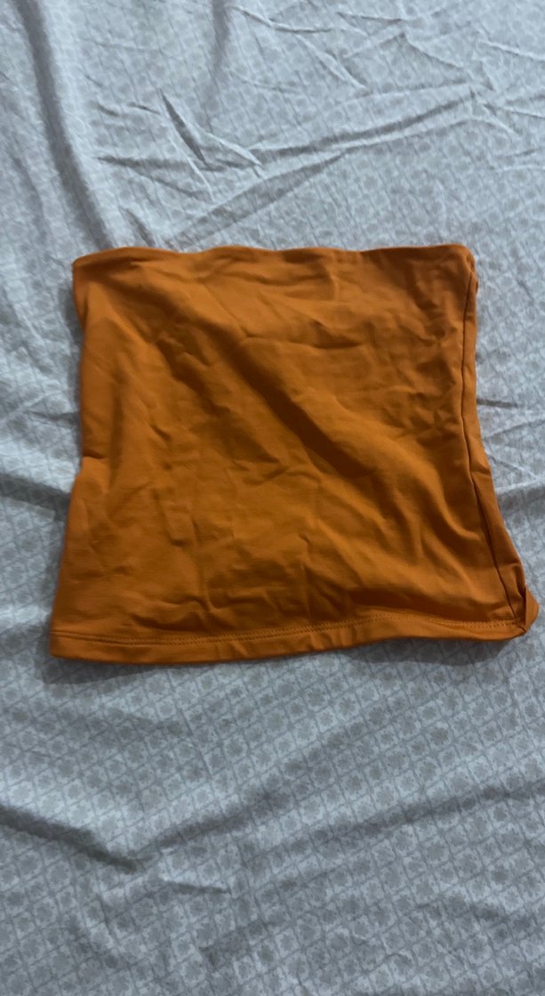 Straplez turuncu kadın üstü, yumuşak kumaştan üretilmiştir. Sade tasarımıyla rahat kullanım sağlar.