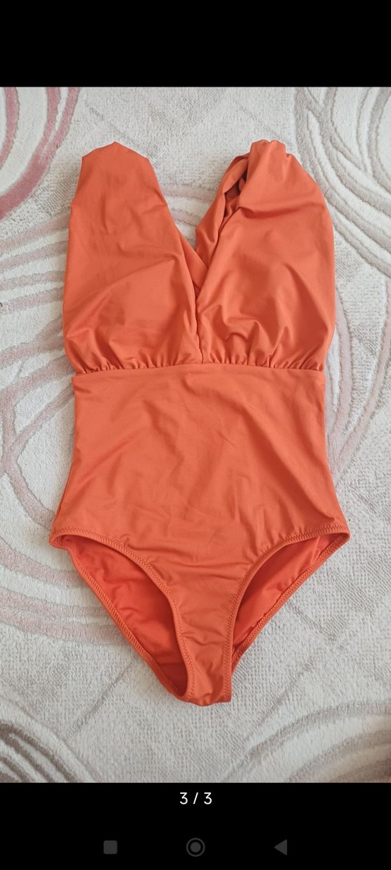 Turuncu renkli, strappy askılı, vücuda oturan kadın mayo. Modern tarzıyla plajda şık ve rahat kullanıma uygundur. ️