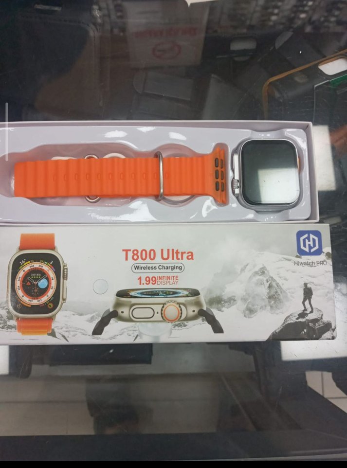 T800 Ultra akıllı saat, 1.99 inç canlı ekrana ve kablosuz şarj özelliğine sahiptir. Turuncu kayış ile gelir. ⌚