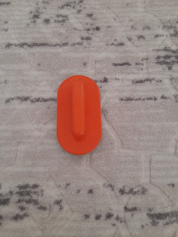 Turuncu renkte, tutma saplı tahta süngeri, pürüzsüz ve eşit makyaj uygulaması sağlar.