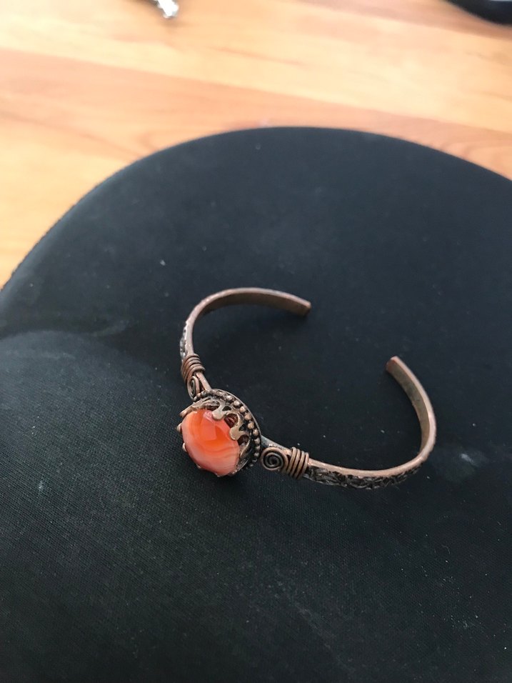 Turuncu boncuklar ve yılan deseniyle bohem tarzda kadın bileklik, günlük kullanıma uygun.