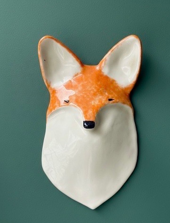 Turuncu tilki figürin, duvar dekoru olarak tasarlanmış, parlak ve detaylı yüz ifadesine sahip. 35 cmdir